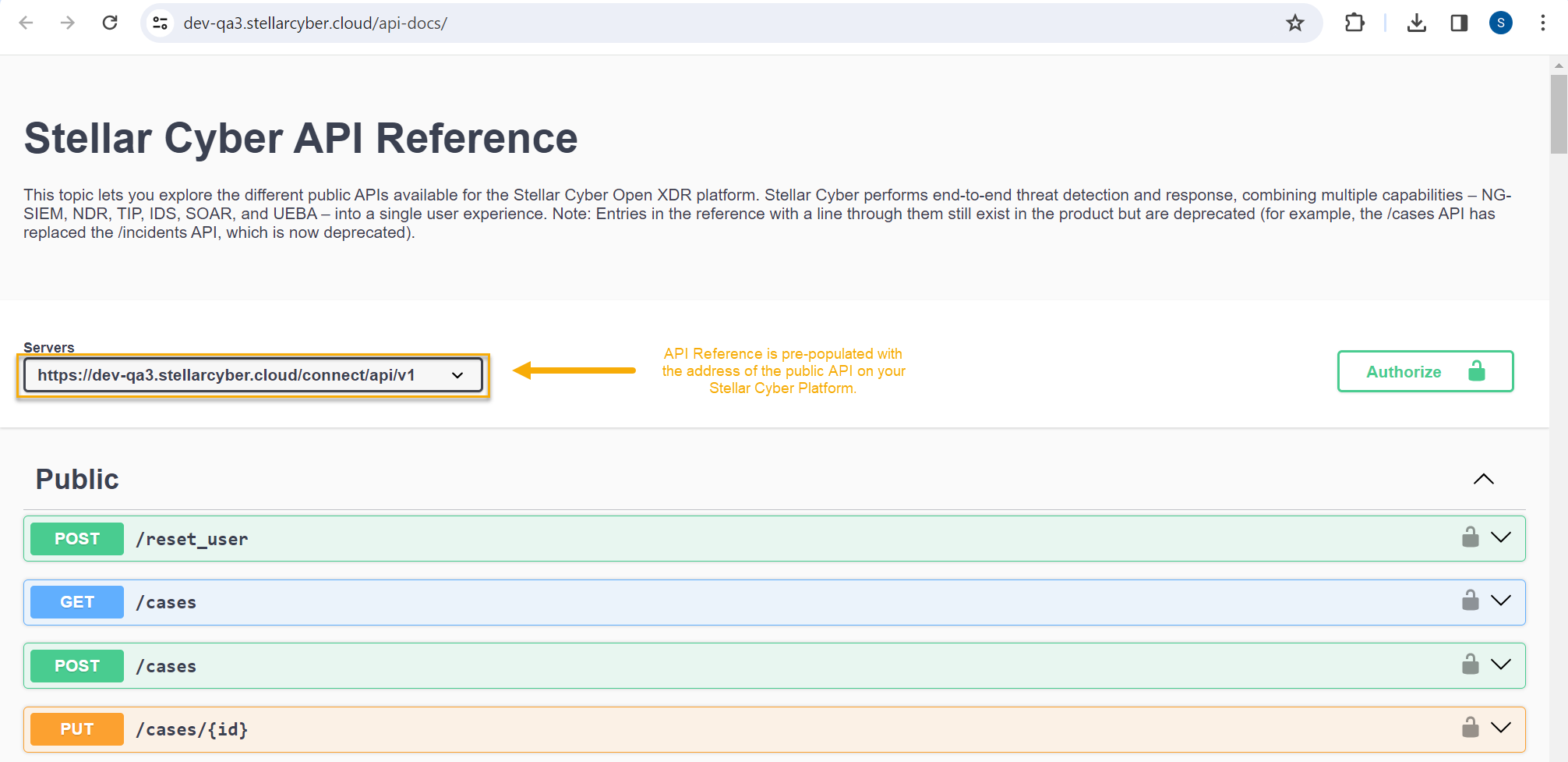 You can see this at the top of the Stellar Cyber API Reference in the Servers field. For example: