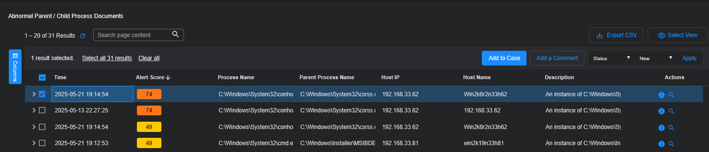 Add to Case – Click this button to add the event to an existing Case or create a new Case based on the event. Refer to Working with Cases for more information on working with Cases.