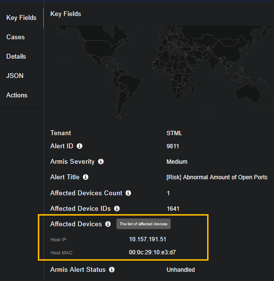 armis.deviceIds Affected Device IDs IDs of the affected devices
