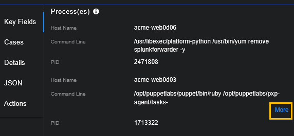 If the value of a Key Field is long, only three lines of text are displayed. Click the More button to expand the value. After the value is expanded, the button toggles to Less.