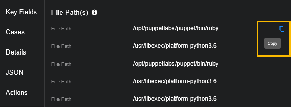 Some Key Fields, such as File Path, have an icon. Click the icon to copy the field value to the clipboard.