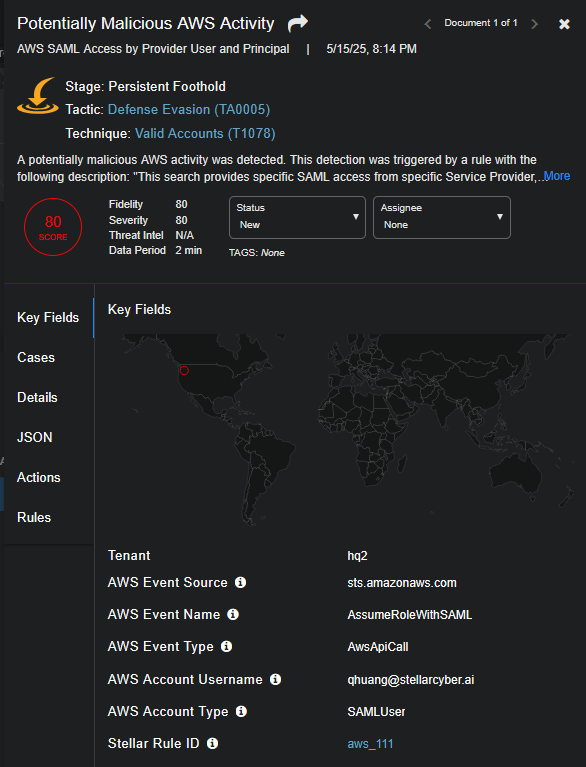 Stellar Cyber supports third party native alert integration. The Key Fields for third party native alert types are as follows: