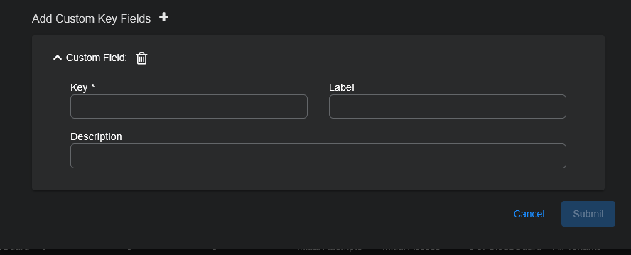 (Optional) Enter a Description. This is what appears in the user interface when you hover over the key field; for example,