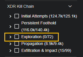 XDR Kill Chain – You can set display filters on each XDR Kill Chain stage, as well as their individual associated tactics. Within a stage, tactics are organized from least to most severe.