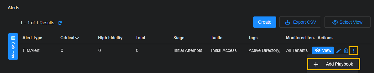 and use the + Add Playbook option to launch the standard ATH Playbook workflow with the template pre-filled to use our custom alert type.