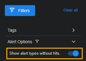 Leave the Show alert types without hits option disabled to focus on triggered alerts.
