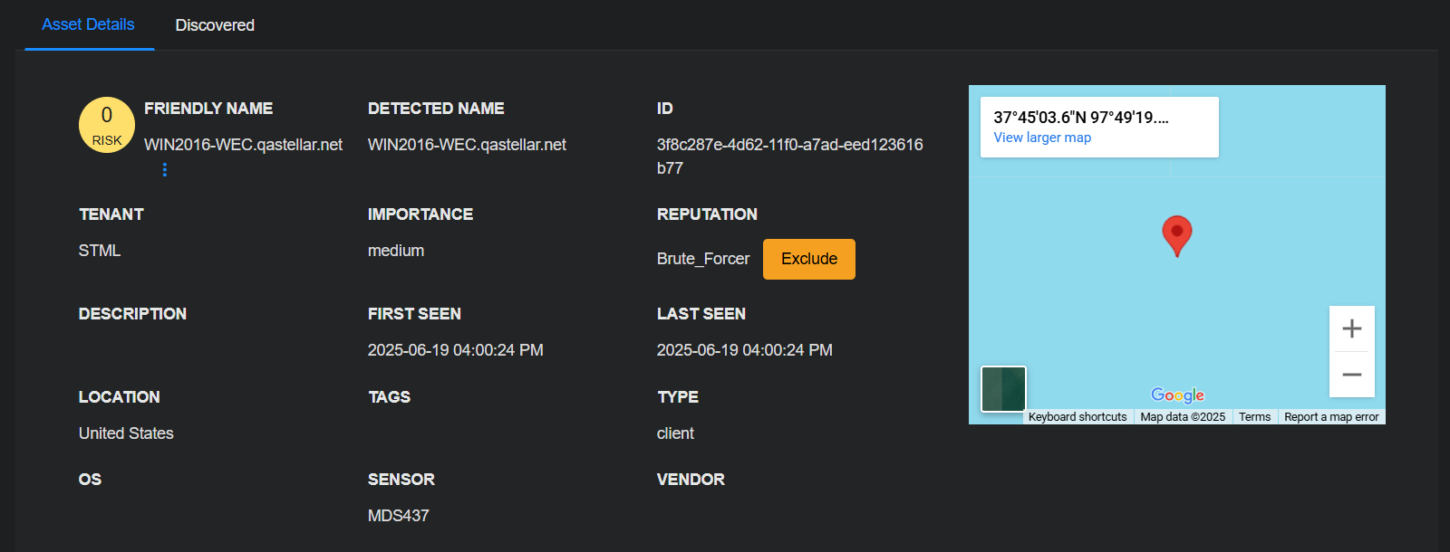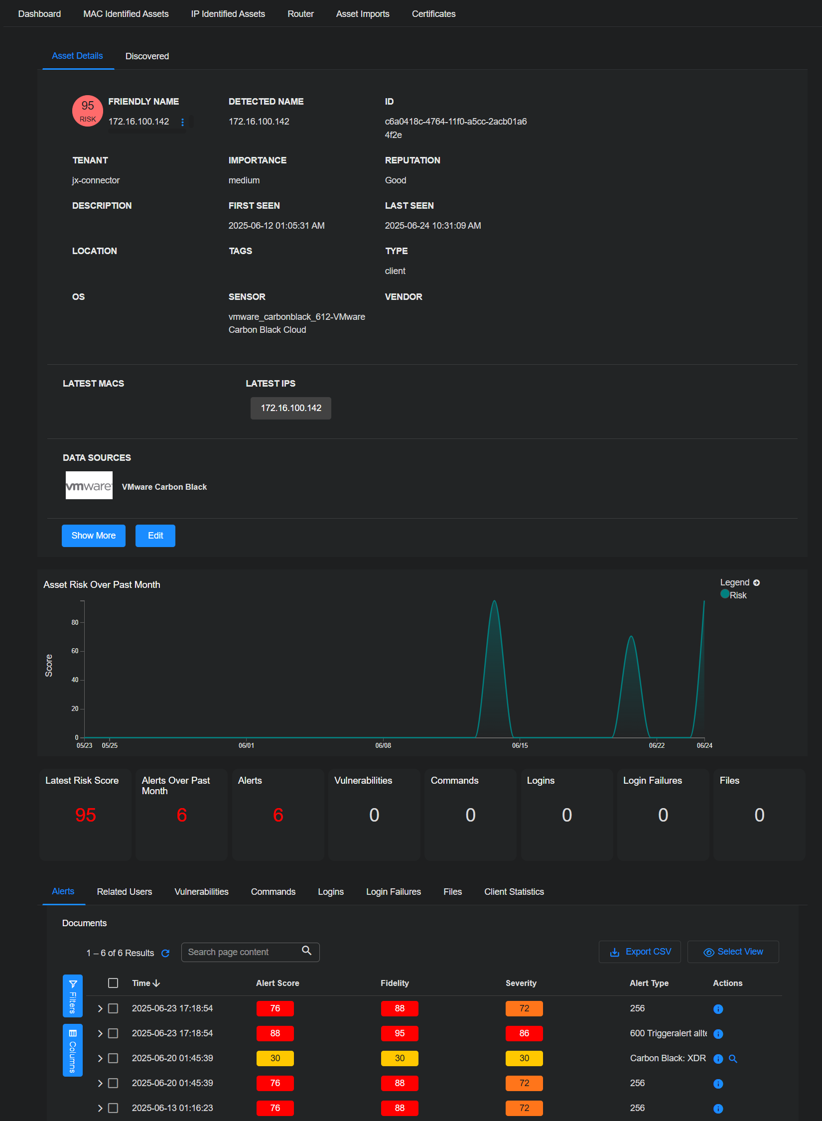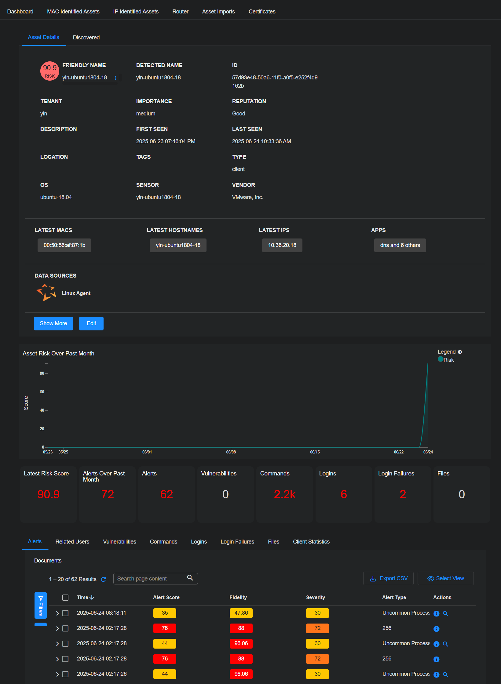 Stellar Cyber keeps track of assets in your system, using both imported and discovered data.