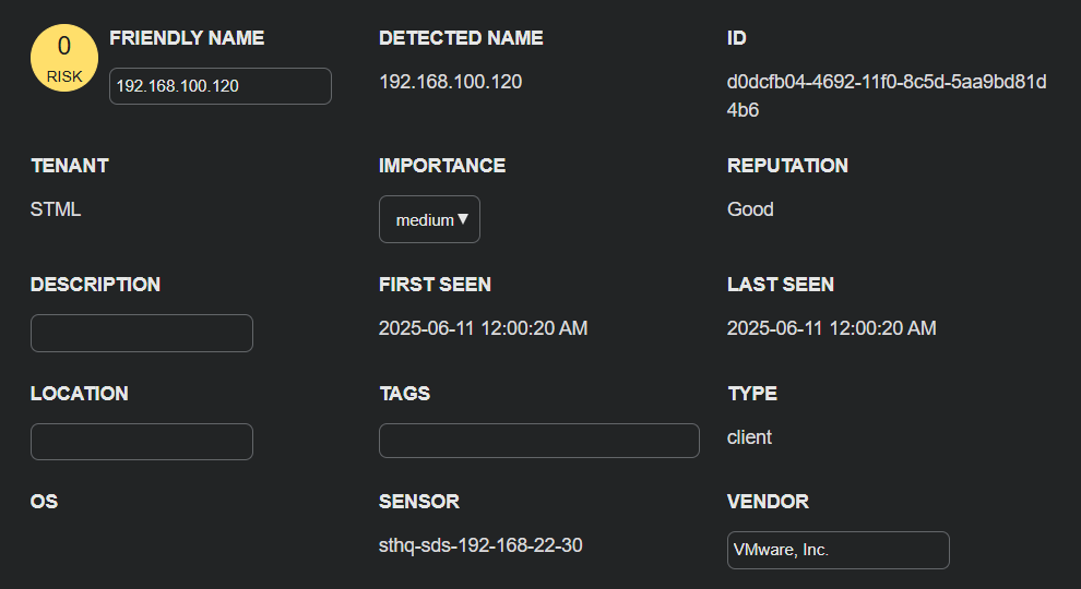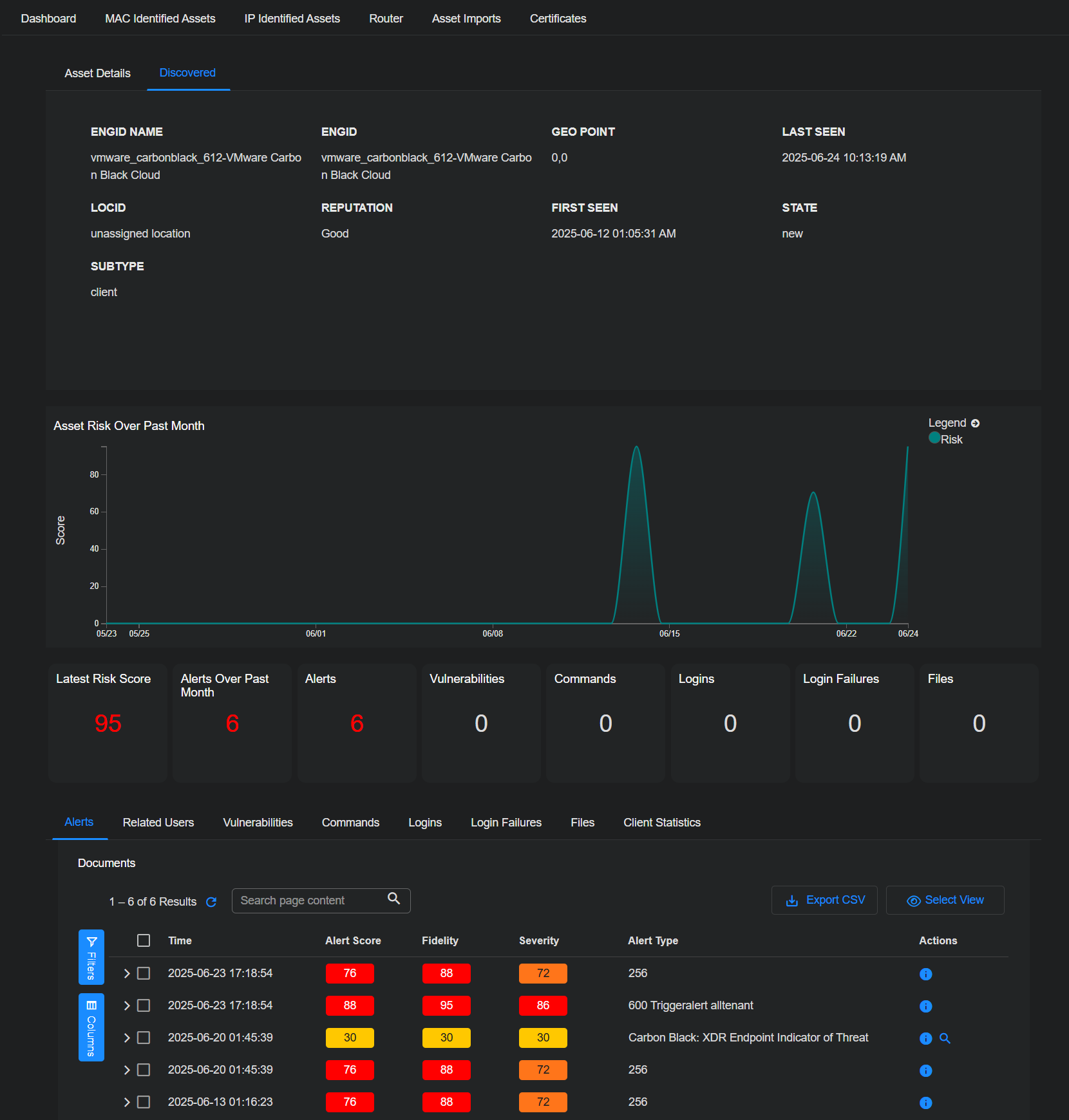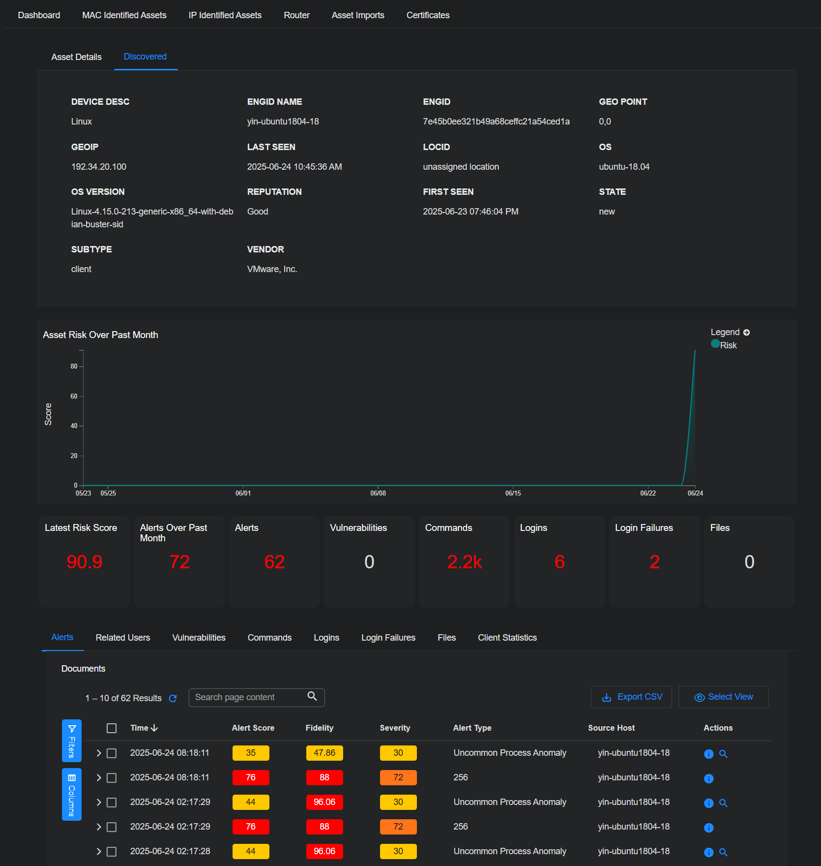Stellar Cyber keeps track of assets in your system, using both imported and discovered data.