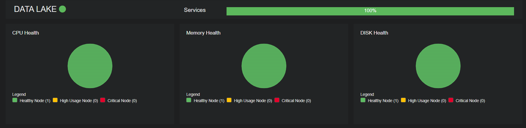 The Data Lake Health panel also reports any of the following conditions detected on the data lake: