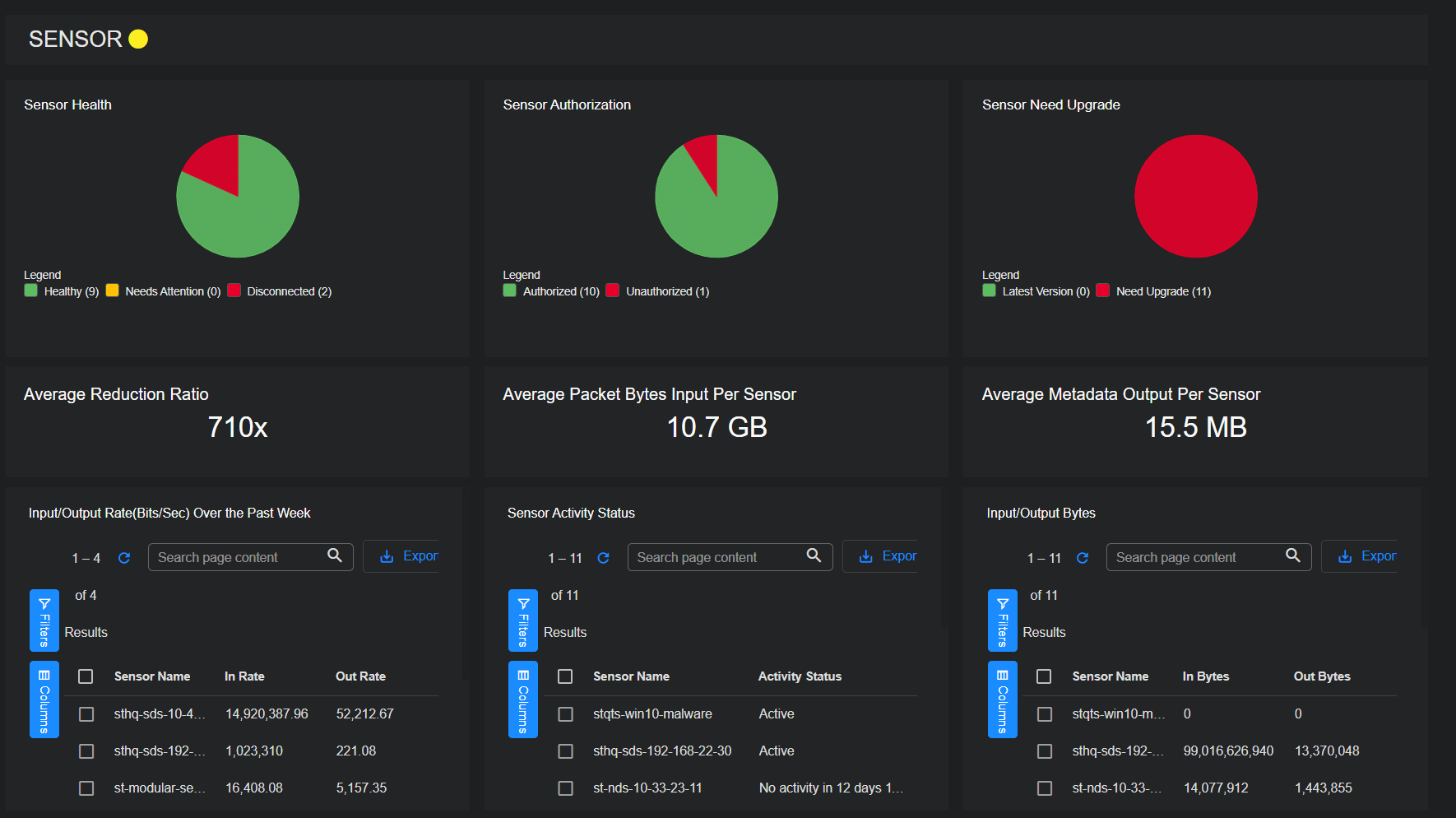 Input/Output Bytes – The total input and output byte count for each sensor for the given.
